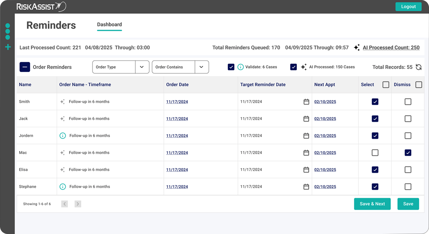 RiskAssist MD’s Risk Management & Reminders module ensures no patient falls through the cracks. It automates communication, flags critical follow-ups, and helps providers proactively manage care—reducing legal risk and improving outcomes.